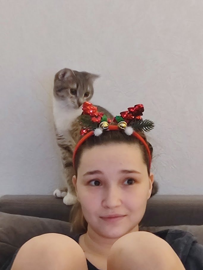 В семье пополнение — кошечка Плюшка. Официальная дочь. Теперь их трое, и дом стал ещё теплее.